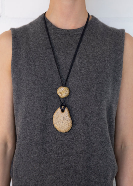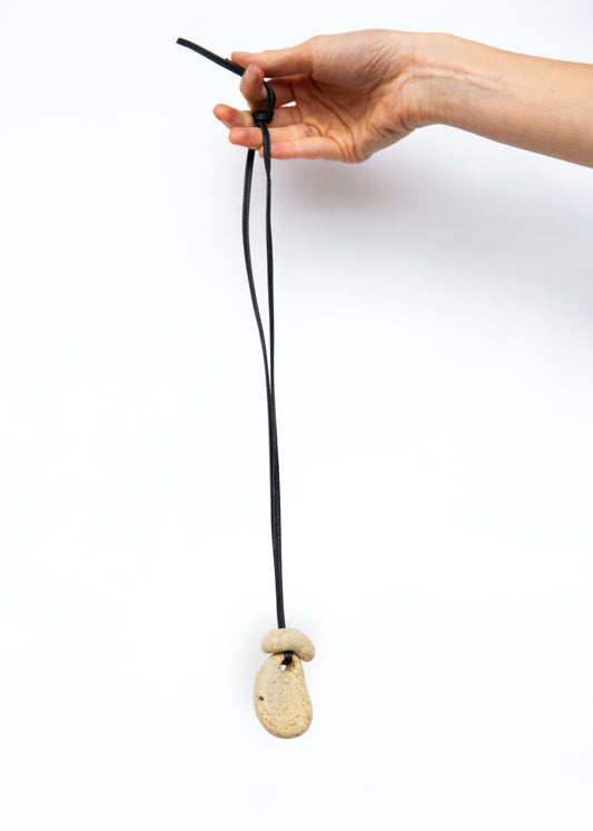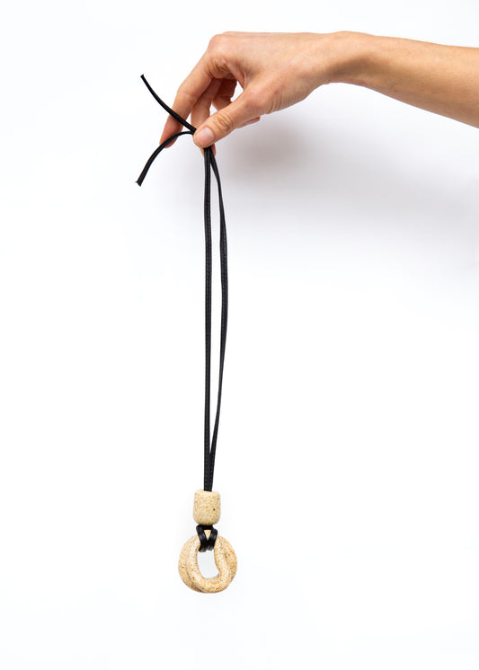 A series of handmade ceramic jewellery. Each piece is one-of-one, finsihed with a 100% natural wood-ash glaze.