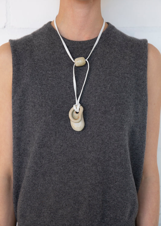 A series of handmade ceramic jewellery. Each piece is one-of-one, finsihed with a 100% natural wood-ash glaze.